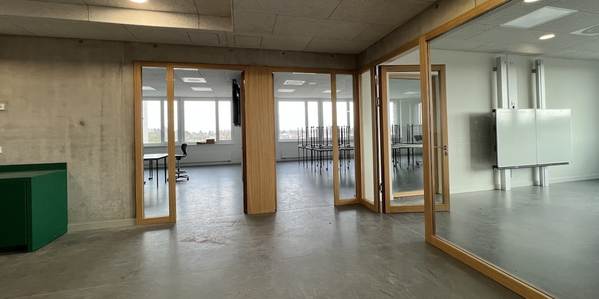 Ähnlich kontrovers kann die Frage nach den Türen zwischen Lernräumen und Freiarbeitsflächen sein - wenn man eine einheitliche Verhaltensnorm bzgl. der Lautstärke im Cluster haben möchte, sollte man auf Türen verzichten, andererseits kann diese Frage auch anders beurteilt werden.